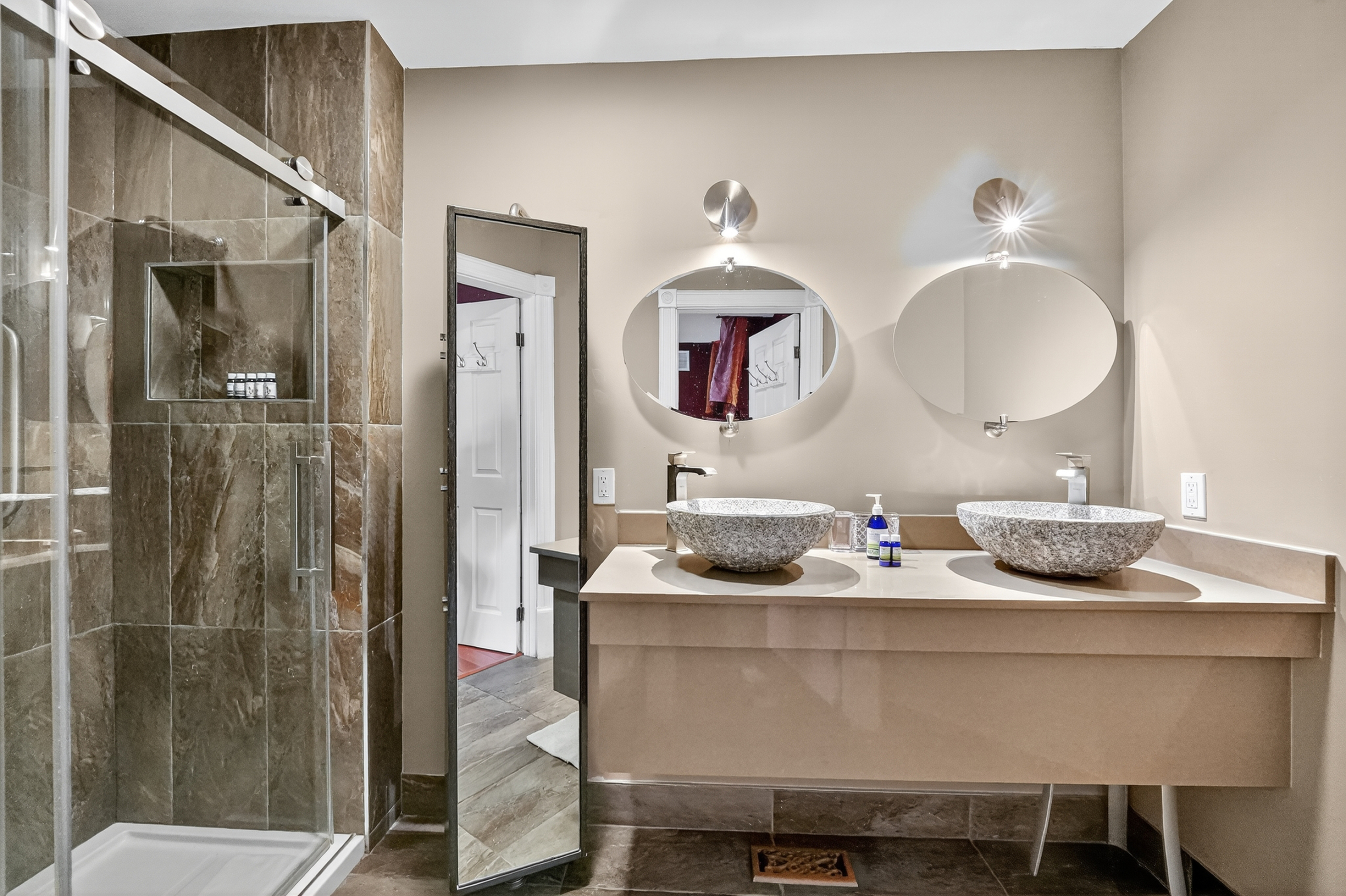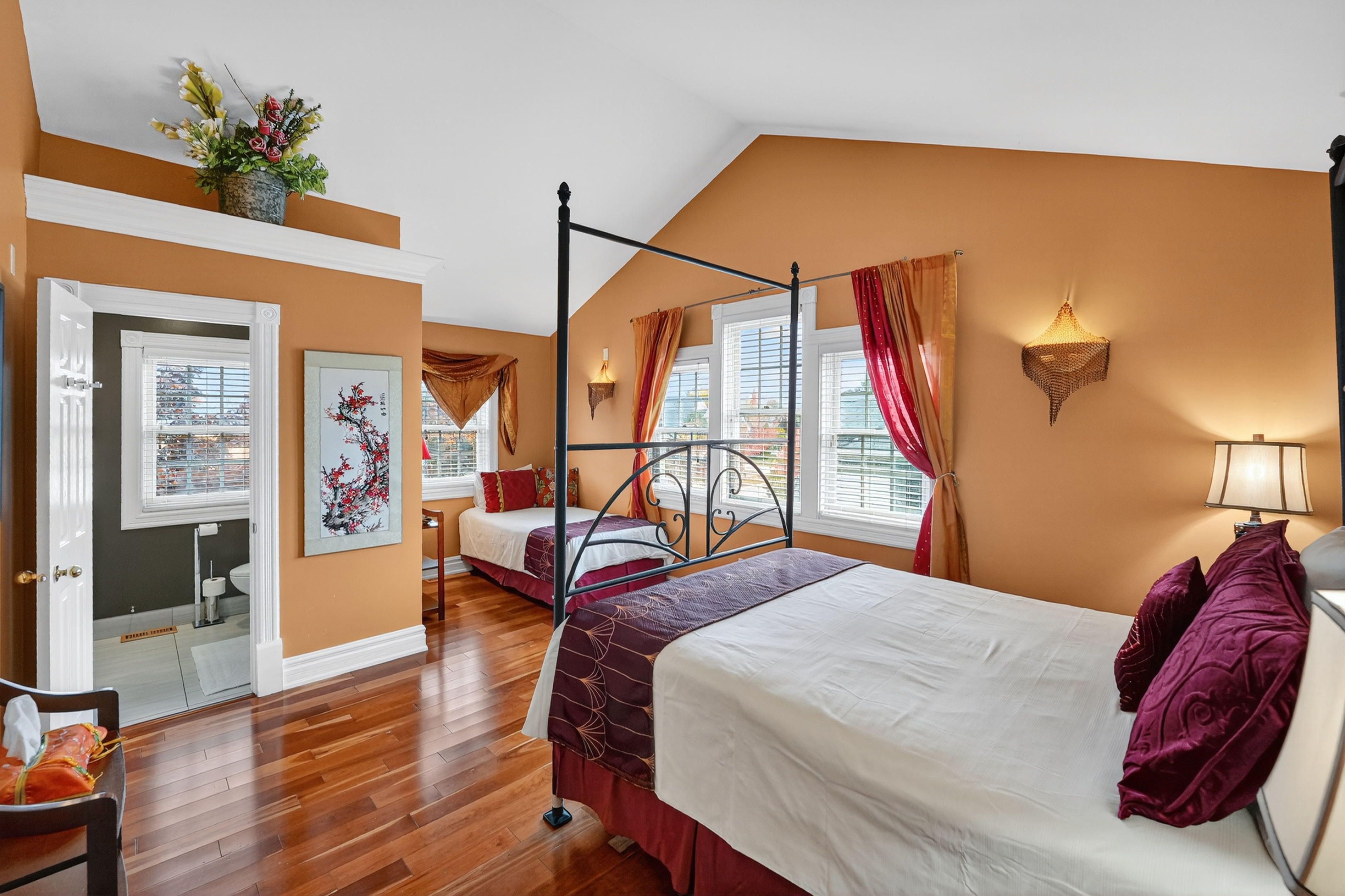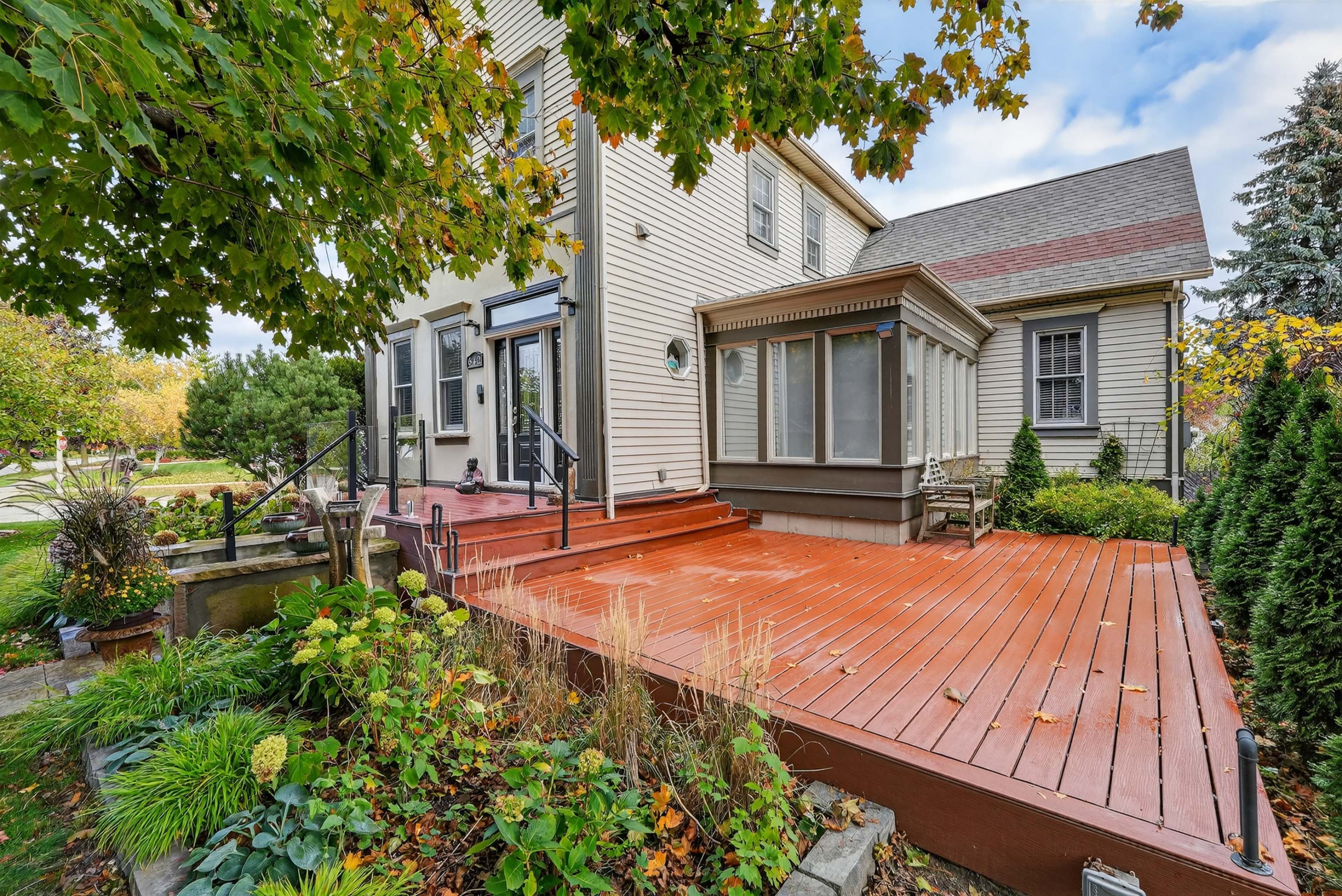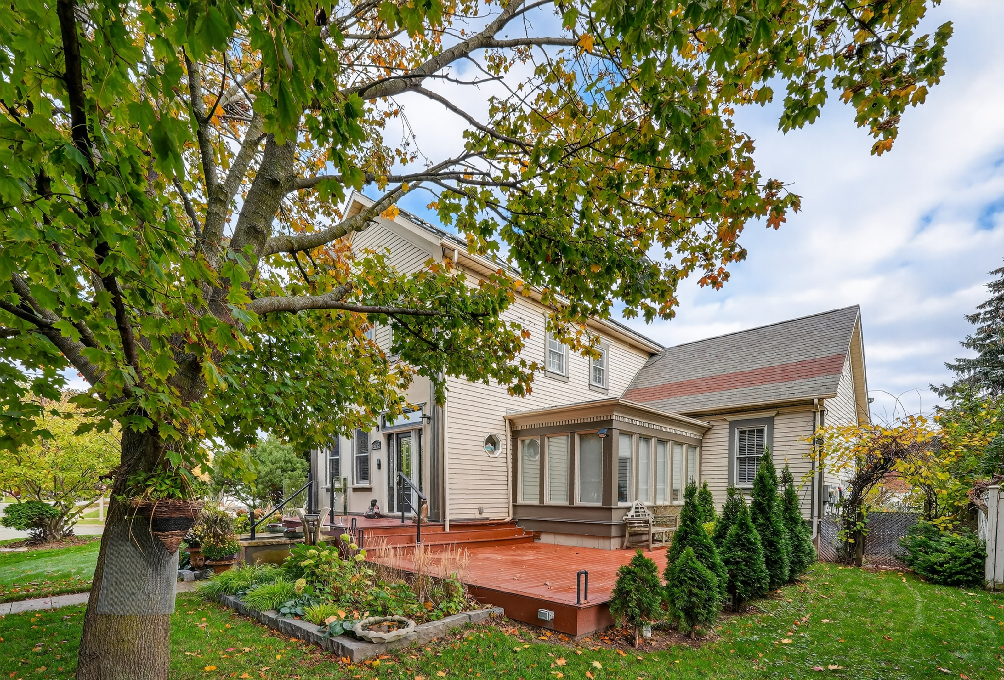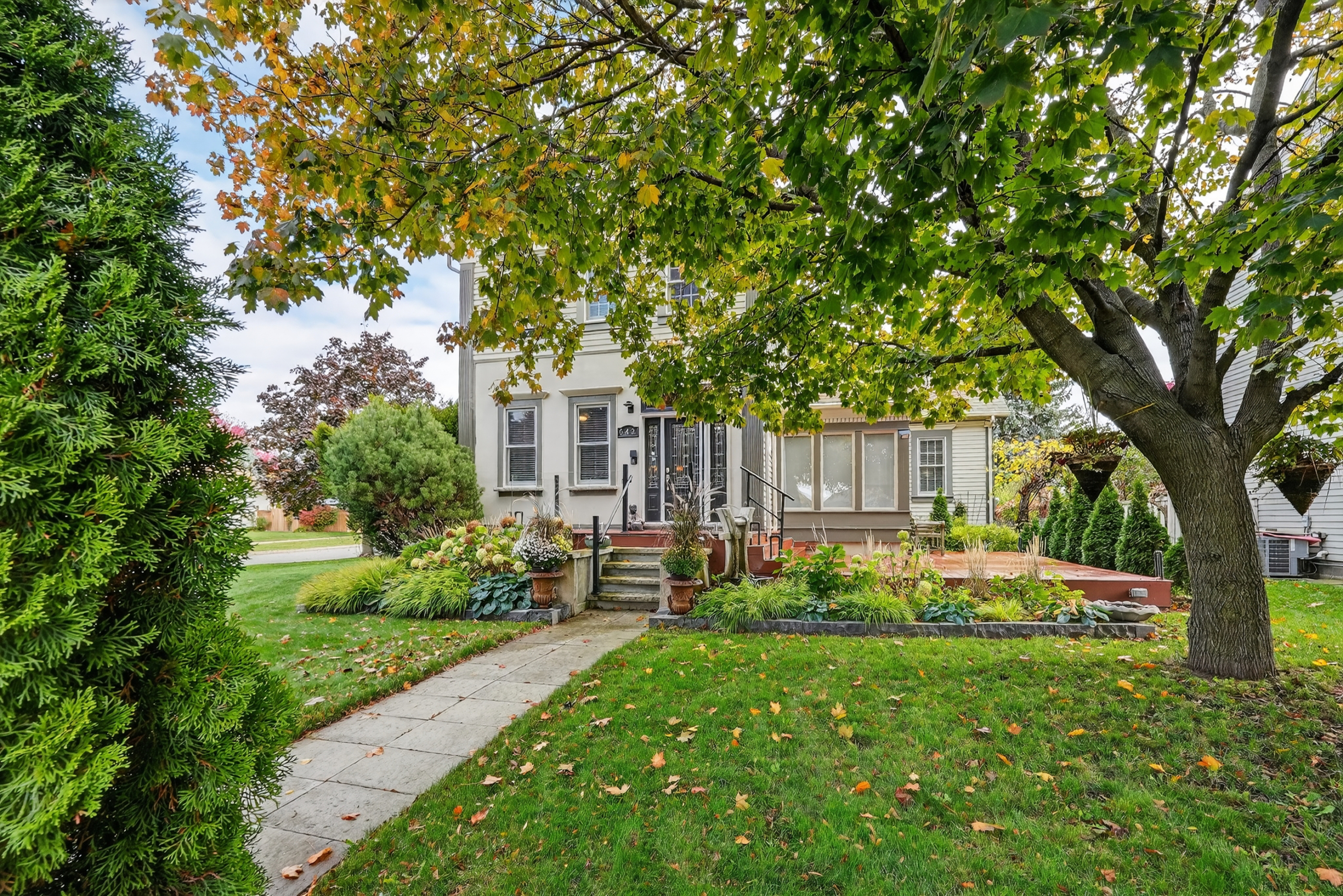 Introducing 642 Simcoe Street - also known as the successful bed and breakfast "Globetrotters" - this inviting two-storey home is sure to impress. Upon entry, you'll be greeted by beautifully designed and thoughtfully styled interiors: a perfect blend of sophistication and comfort, ideal for both large-scale entertaining and everyday living.The main level features a stunning peninsula-style kitchen with granite countertops that flows seamlessly into the inviting living room, complete with a gas fireplace, built-in bookcase, and elegant ceiling details. This level also includes a bright sunroom, a dining room, and a spacious main-floor bedroom with a private 3-piece ensuite.Upstairs, enjoy the convenience of second-floor laundry and three well-appointed, light-filled bedrooms - two of which feature their own private 3-piece ensuite bathrooms, and one that offers a walk-in closet or bonus storage space.The fully finished basement provides exceptional flexibility, with an additional bedroom or office/hobby space, another 3-piece bathroom, and a large recreation room - perfect for gatherings or relaxation.Situated on a lovely corner lot, this property is complete with roof-mounted solar panels, composite decking, multiple outdoor seating areas, a private rear garden courtyard, lush perennials, and a detached two-car garage with a versatile bonus room above.Embrace the peaceful lifestyle of charming Niagara-on-the-Lake - surrounded by scenic trails, parks, vineyards, golf courses, the Shaw Festival Theatre, and the renowned Queen Street shops - all within easy walking distance.