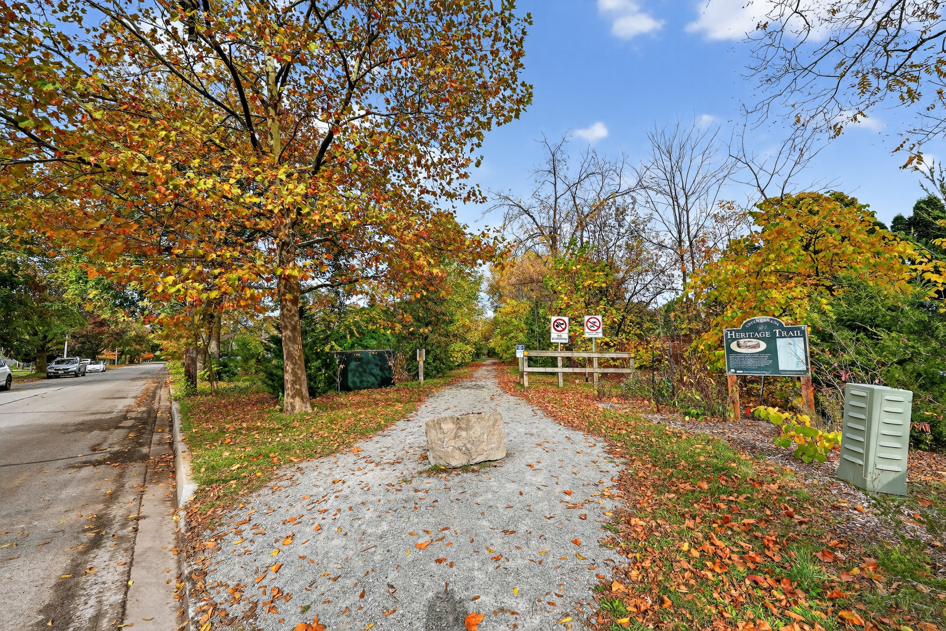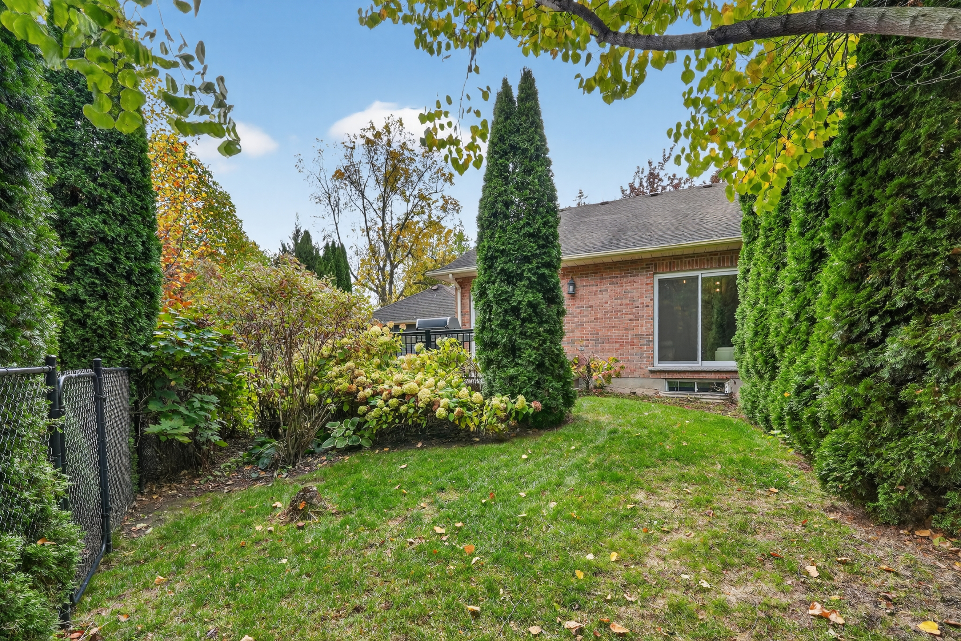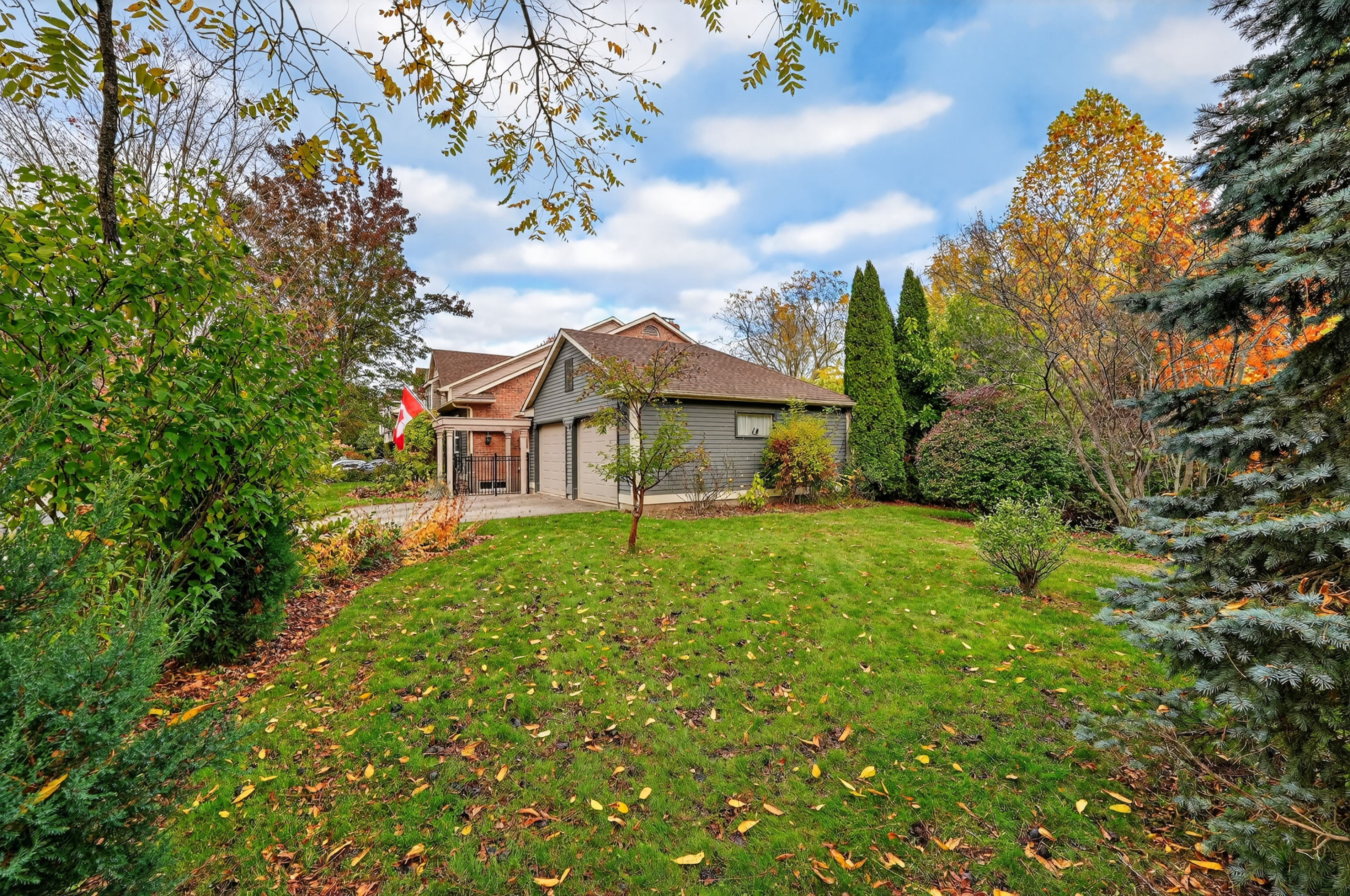 Welcome to this stunning end unit freehold bungaloft townhouse, ideally situated in the heart of Old Town Niagara-on-the-Lake. This beautiful home fitted with hunter douglas window coverings offers a timeless design, open-concept layout, and an abundance of natural light throughout. The spacious eat-in kitchen features modern quartz countertops, generous storage, a convenient end breakfast seating , and direct access to the rear deck - perfect for entertaining or enjoying a peaceful morning coffee.The inviting great room is the centerpiece of the home, offering a cozy gas fireplace, comfortable living areas, and impressive two-storey ceiling height. The main level also includes a laundry room, powder room, and a primary suite complete with a walk-in closet and a luxurious ensuite bathroom featuring heated floors. Upstairs, a spacious private bedroom includes closet space and a 3-piece ensuite with a skylight for added natural light.The lower level offers versatility, with a third bedroom or office space, a comfortable family room, a powder room, and a large utility/storage area for all your needs. Outside, enjoy the fenced yard, rear deck, interlock courtyard, backing onto the heritage walking trail - all surrounded by mature trees and beautiful perennial gardens offering privacy. A detached 2-car garage completes this exceptional property. Located just a short walk from fine dining restaurants, boutique shopping, the Shaw Festival Theatre, and world-class wineries, this home offers the very best of Niagara-on-the-Lake living.Experience Niagara's exceptional quality of life in this charming and elegant home!