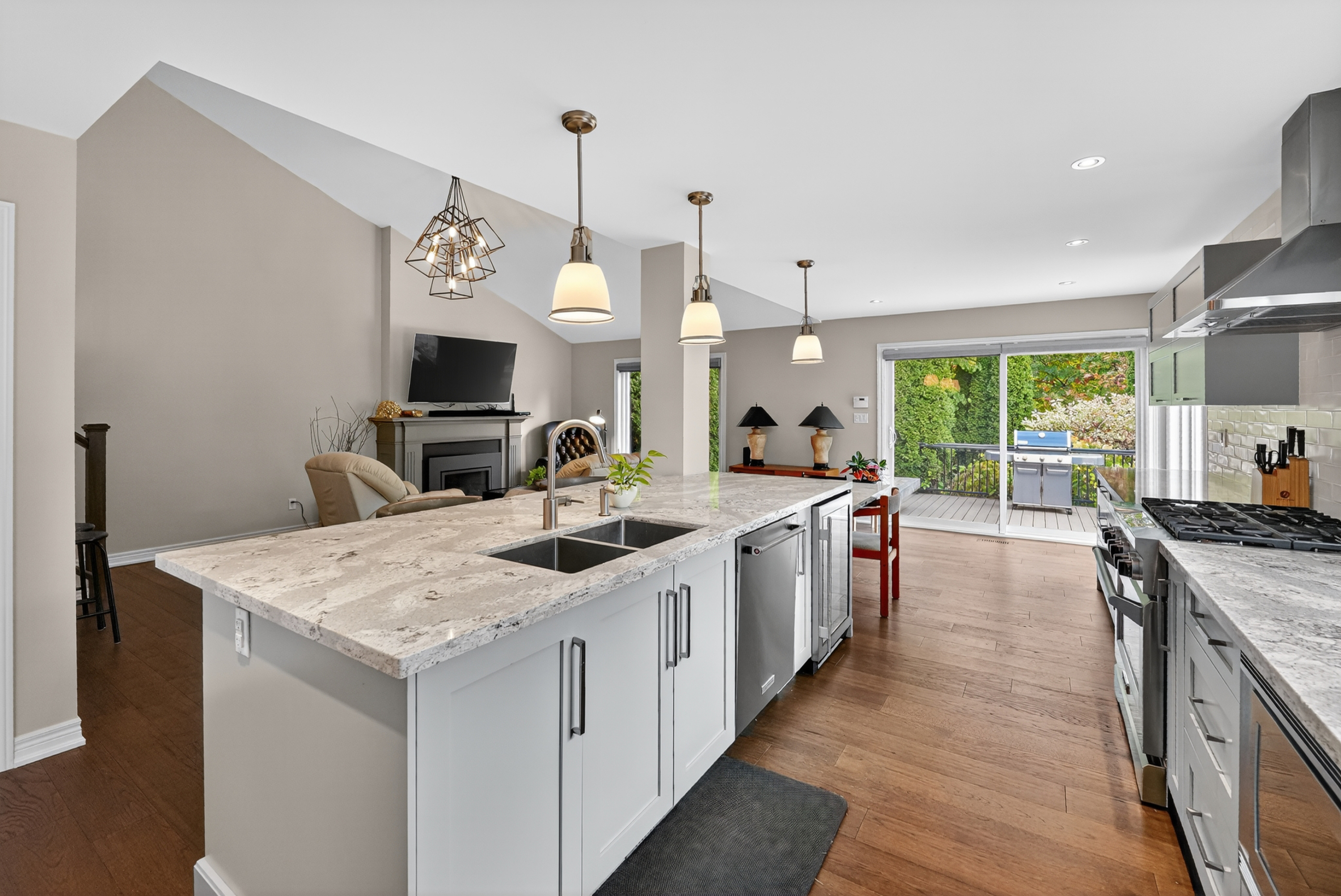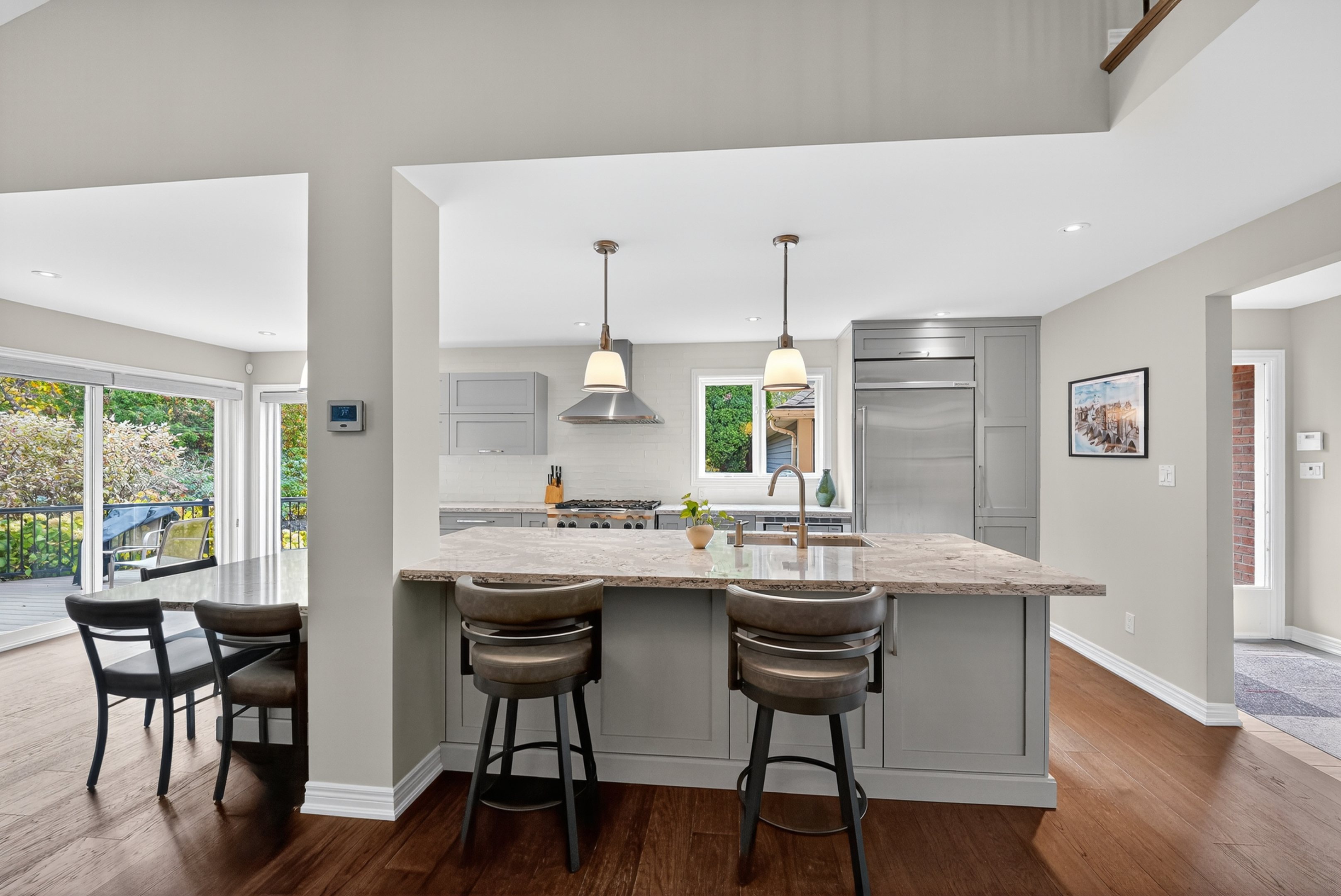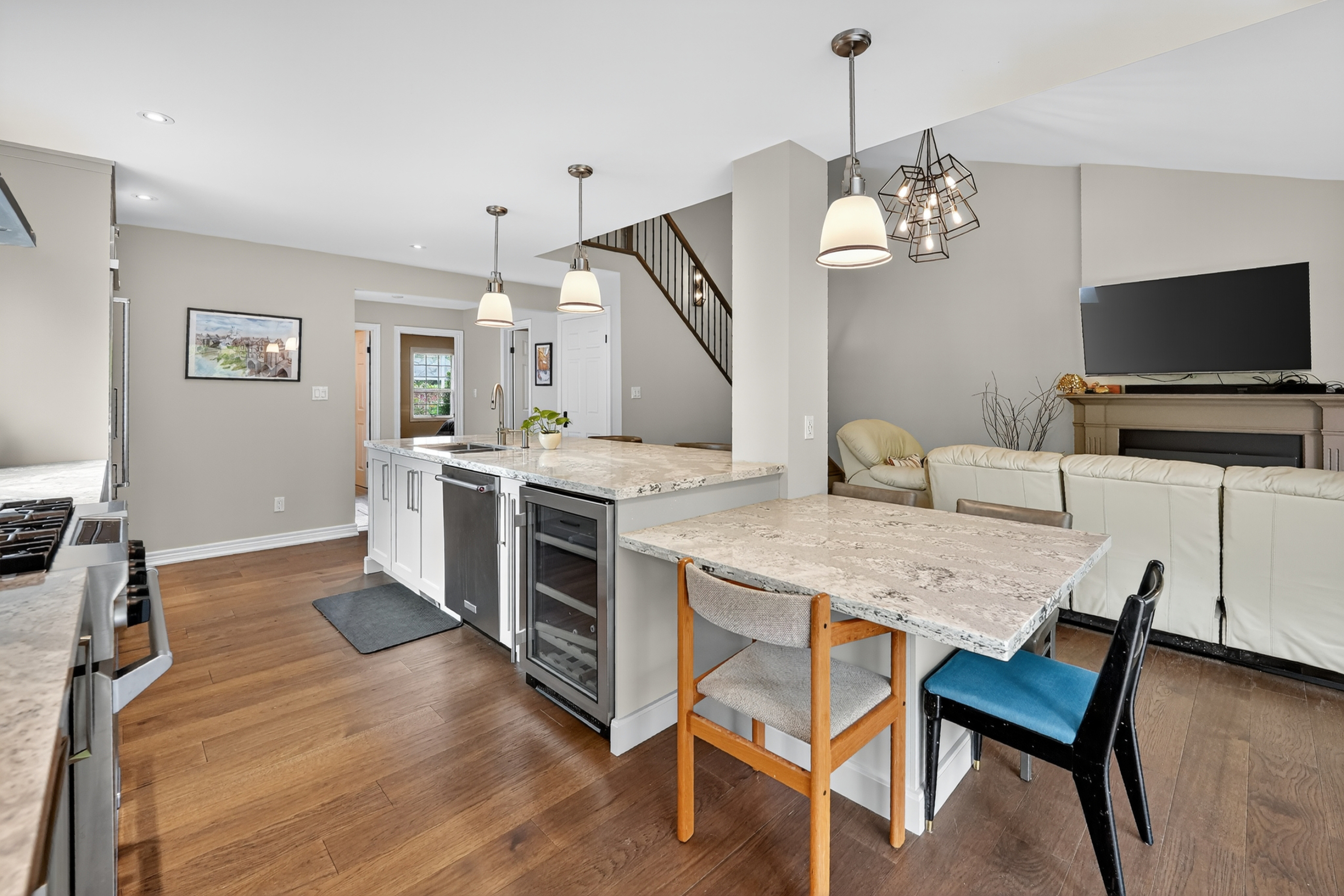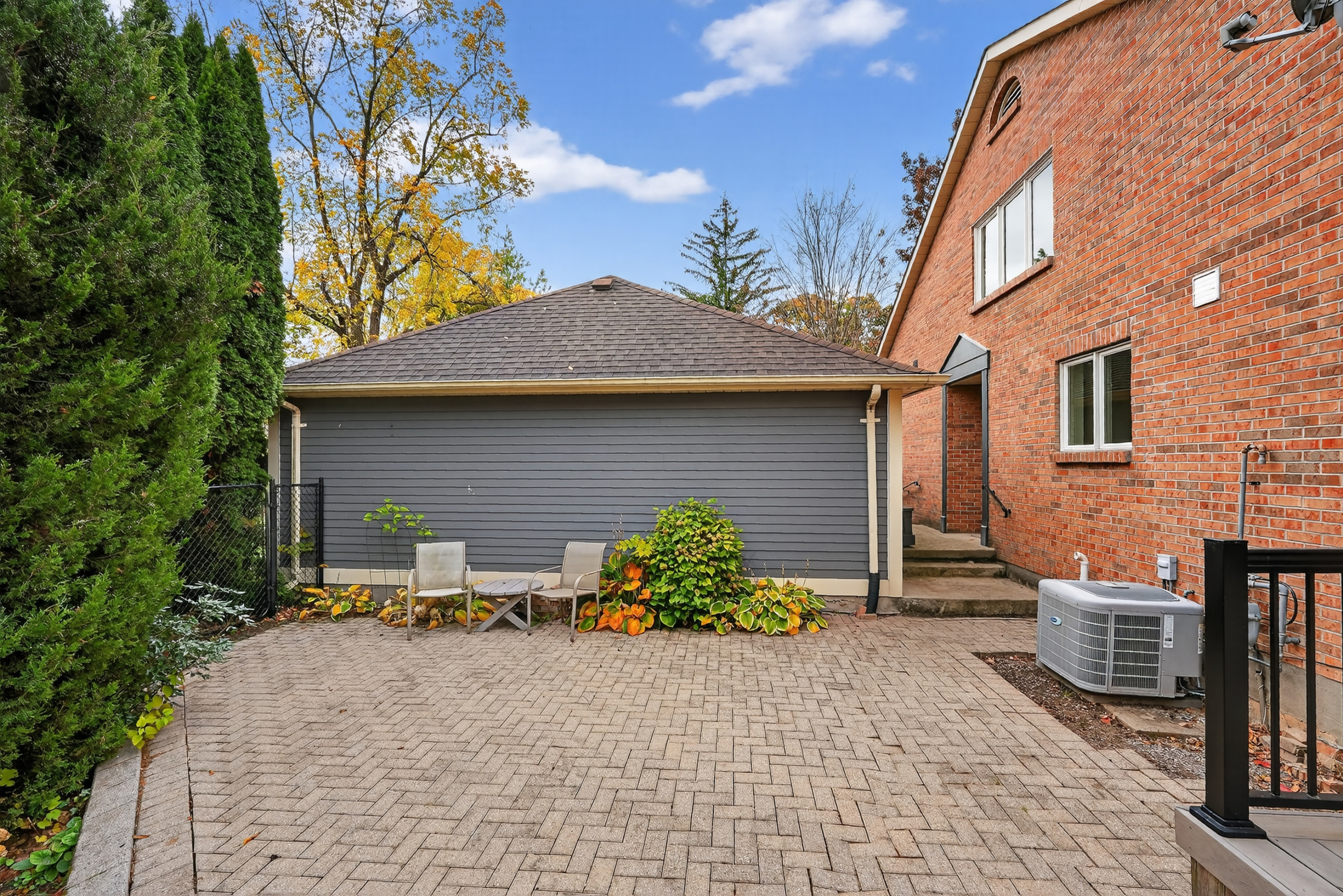 Welcome to this stunning end unit freehold bungaloft townhouse, ideally situated in the heart of Old Town Niagara-on-the-Lake. This beautiful home fitted with hunter douglas window coverings offers a timeless design, open-concept layout, and an abundance of natural light throughout. The spacious eat-in kitchen features modern quartz countertops, generous storage, a convenient end breakfast seating , and direct access to the rear deck - perfect for entertaining or enjoying a peaceful morning coffee.The inviting great room is the centerpiece of the home, offering a cozy gas fireplace, comfortable living areas, and impressive two-storey ceiling height. The main level also includes a laundry room, powder room, and a primary suite complete with a walk-in closet and a luxurious ensuite bathroom featuring heated floors. Upstairs, a spacious private bedroom includes closet space and a 3-piece ensuite with a skylight for added natural light.The lower level offers versatility, with a third bedroom or office space, a comfortable family room, a powder room, and a large utility/storage area for all your needs. Outside, enjoy the fenced yard, rear deck, interlock courtyard, backing onto the heritage walking trail - all surrounded by mature trees and beautiful perennial gardens offering privacy. A detached 2-car garage completes this exceptional property. Located just a short walk from fine dining restaurants, boutique shopping, the Shaw Festival Theatre, and world-class wineries, this home offers the very best of Niagara-on-the-Lake living.Experience Niagara's exceptional quality of life in this charming and elegant home!