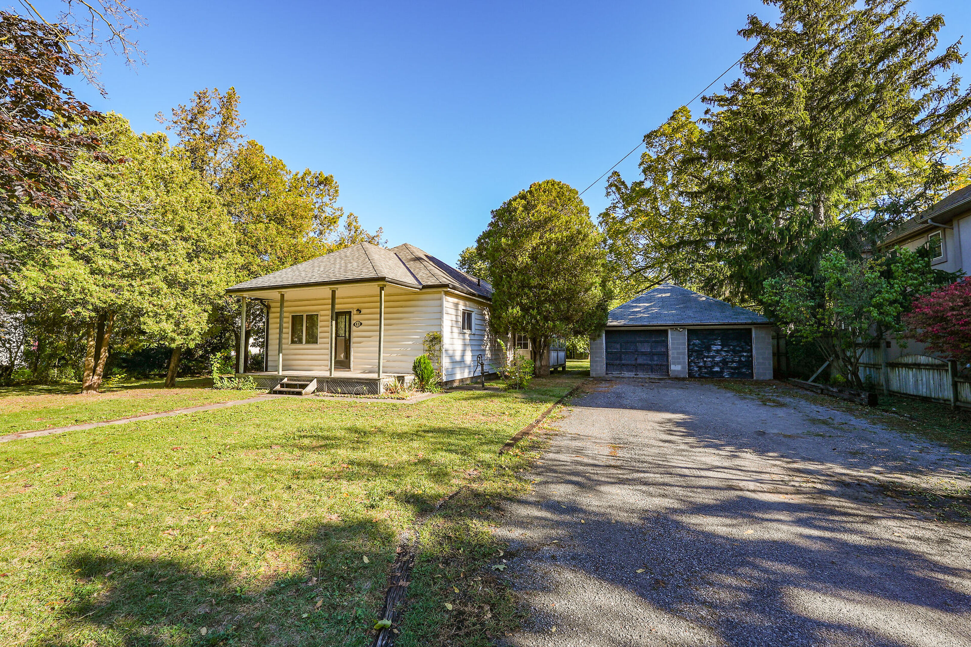Exceptional 104 ftX 200 ft lot in one of NOTL's most sought-after neighbourhoods. This rare offering in Old Town features a 3-bedroom bungalow with a 4-piece bath, basement cellar with exterior access, and spacious eat-in kitchen ready for renovation, restoration, or new construction. Set on a deep, generous lot with mature trees, the property includes a covered front porch, ample parking, and a detached 2-car garage (25 ft X 23.6 ft), ideal for storage, hobbies, or a workshop. Whether you're looking to invest, build your dream home, or add personal touches, the potential possibilities here are many. This family home is situated just a short walk to downtown, restaurants, The Commons, Heritage Trail, Pillar and Post Gardens, and world-renowned wineries. Wonderful opportunity to be part of Niagara-on-the-Lake's timeless charm.